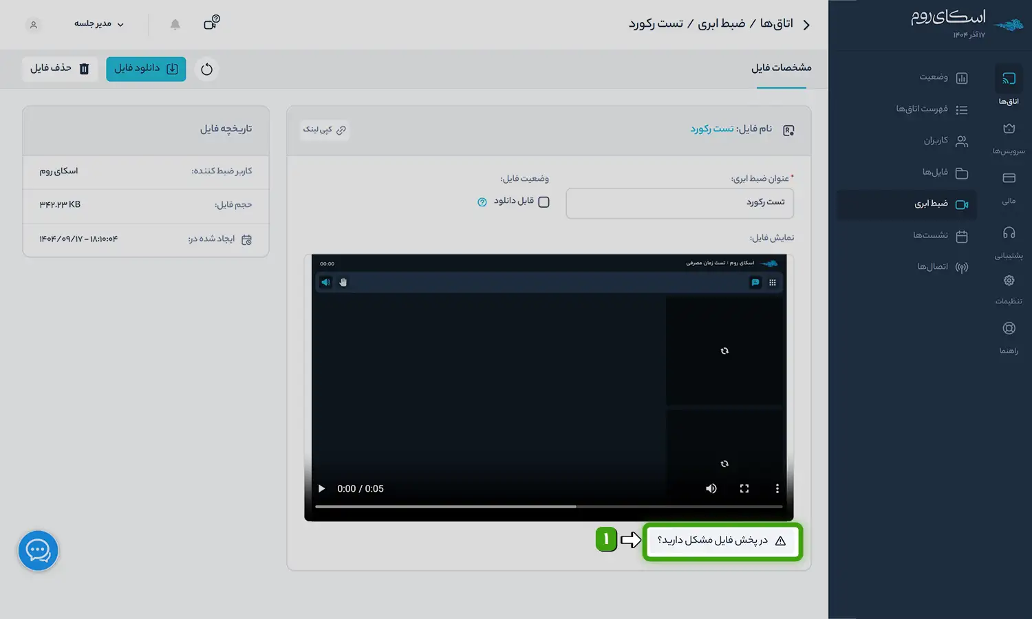 + امکان مدیریت دانلود یا عدم دانلود فایل ضبط شده توسط شرکت کنندگان را داریم