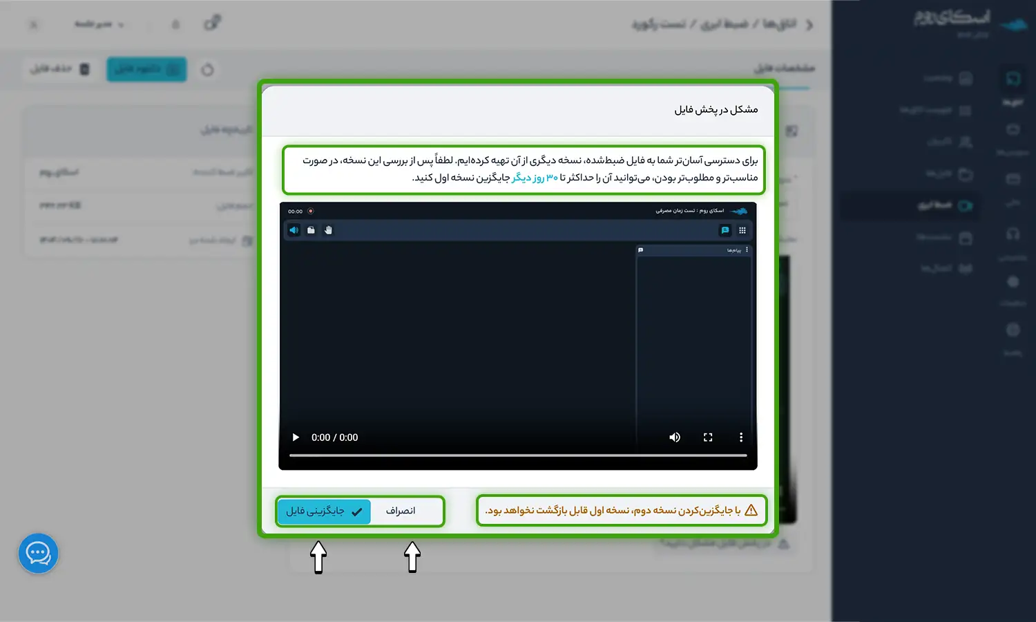 انتخاب: در صورت مطلوب بودن کیفیت، دکمه جایگزینی فایل را بزنید. در غیر این صورت، دکمه انصراف را انتخاب کنید.