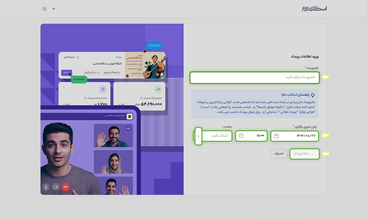 امکان رویداد مجموعه ای از ابزارها و قابلیت ها را برای تسهیل هر چه بیشتر فرایند برگزاری در اختیار شما قرار میدهد