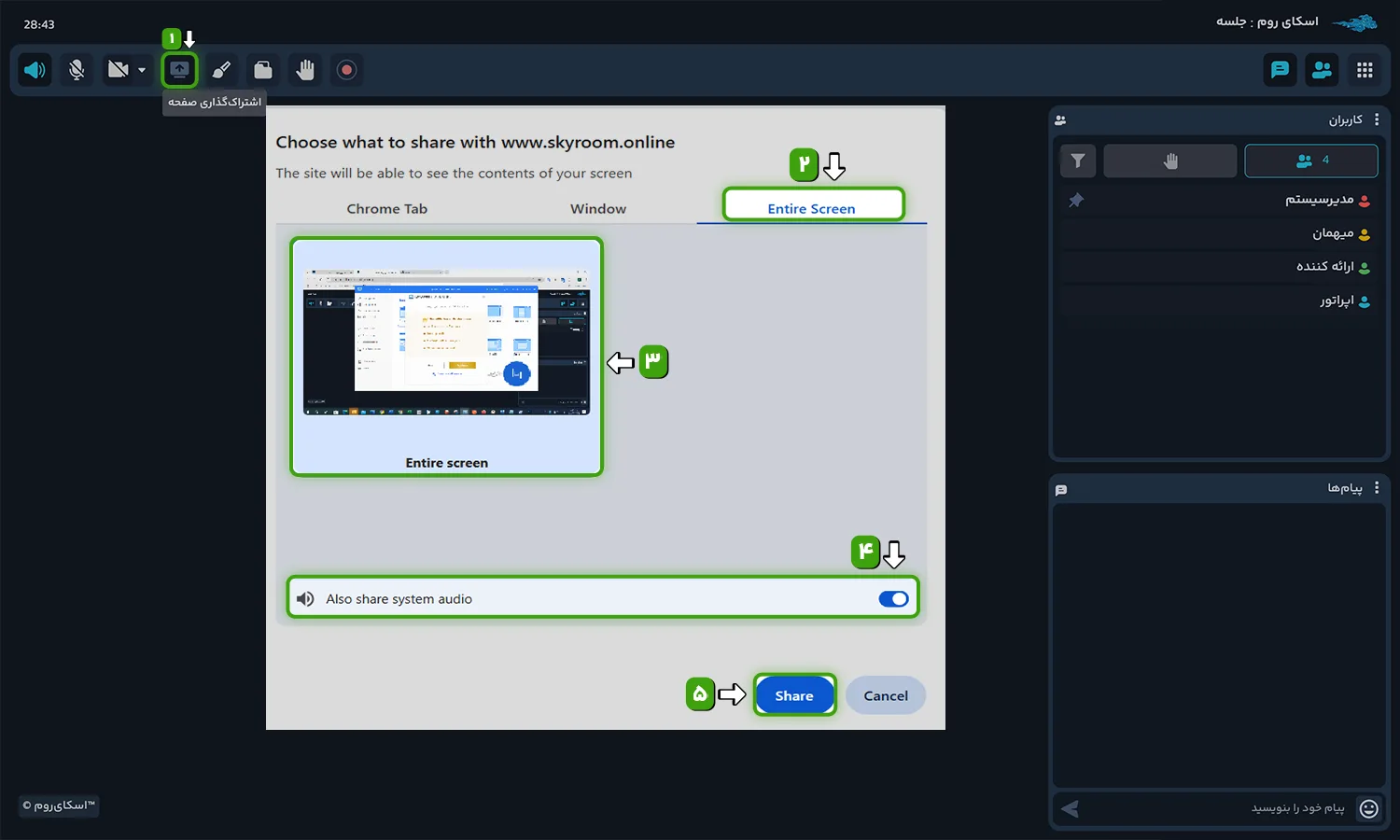 اشتراکگذاری تمام صفحه (Entire Screen)